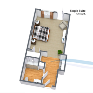 The exterior doors are secured at night allowing access to staff and families with their personal codes. Residents easily unlock their room doors with electronic (RFID) bracelets or fobs, eliminating the need for cumbersome keys.