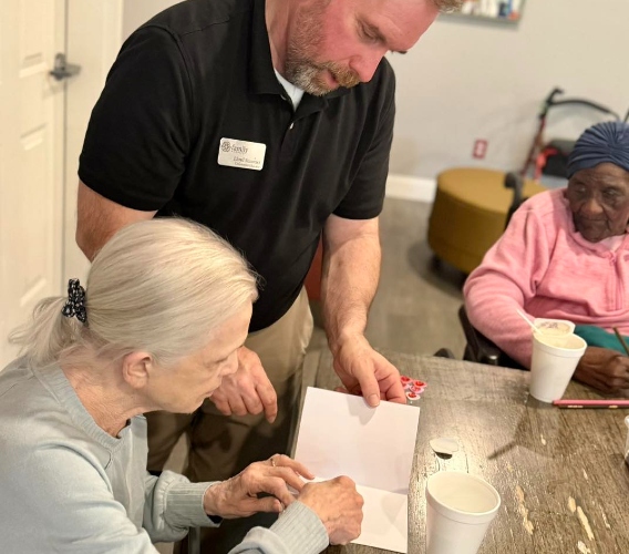 Our exterior doors are secured at night, and residents use RFID bracelets or fobs for keyless room entry. Family members also receive secure access codes for peace of mind.