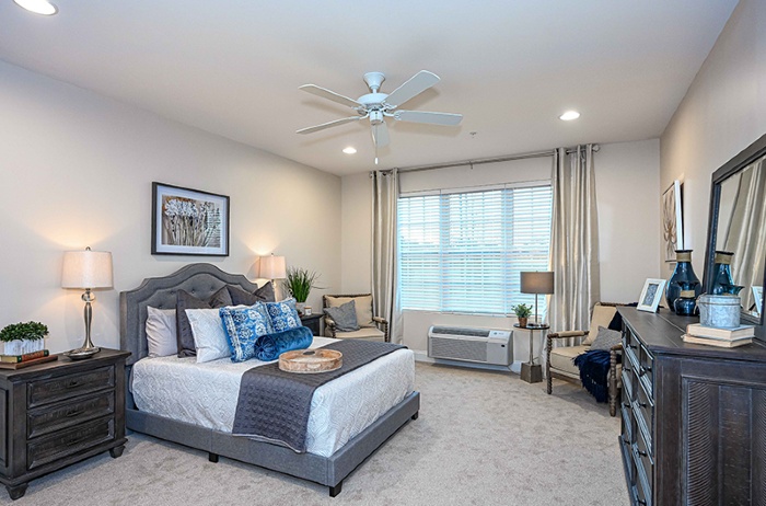 Senior apartments offer housing only, while Manor Lake provides full services—dining, housekeeping, transportation, and 24/7 support, alongside private or companion suites.