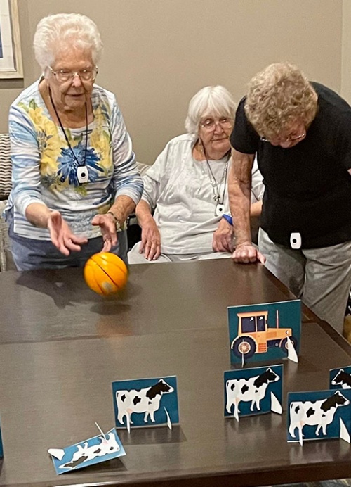 The exterior doors are secured at night, allowing access to staff and families with their personal codes. Residents easily unlock their room doors with electronic (RFID) bracelets or fobs, eliminating the need for cumbersome keys.